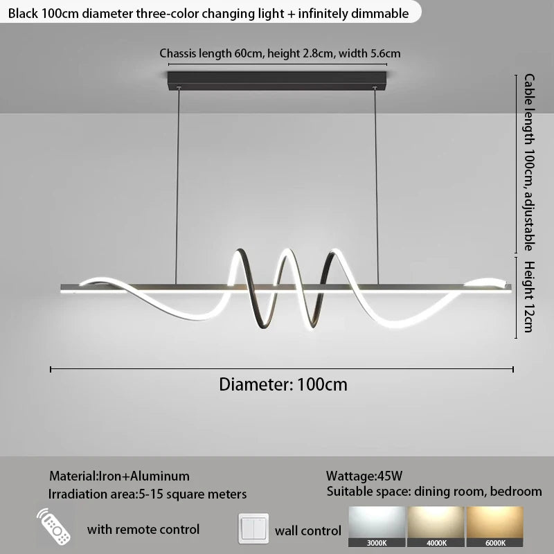 Refresh your dining area with this 2024 New-Style Modern Minimalist Chandelier, designed to hang gracefully above your dining table, kitchen island, or bar. Featuring a sleek linear shape, this pendant light delivers soft, eye-protecting illumination, perfect for creating a cozy, stylish atmosphere.